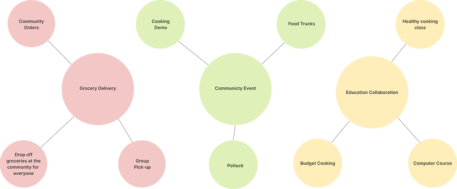 After we color-coded key insights in our interview transcript, we organized information on color stickers and created an affinity map on Miro. The affinity process helped us uncover our interviewees’ pain points and concerns about food/grocery purchases and orders. The outcome of analyzing enabled us to brainstorm some potential opportunities to solve issues they had.